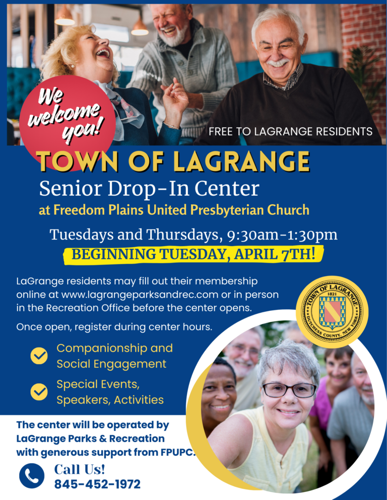 The Dutchess County Office for the Aging invites seniors in the LaGrange, Pleasant Valley and Poughkeepsie area to the Tri-Town Senior Friendship Center for activities, companionship and more!